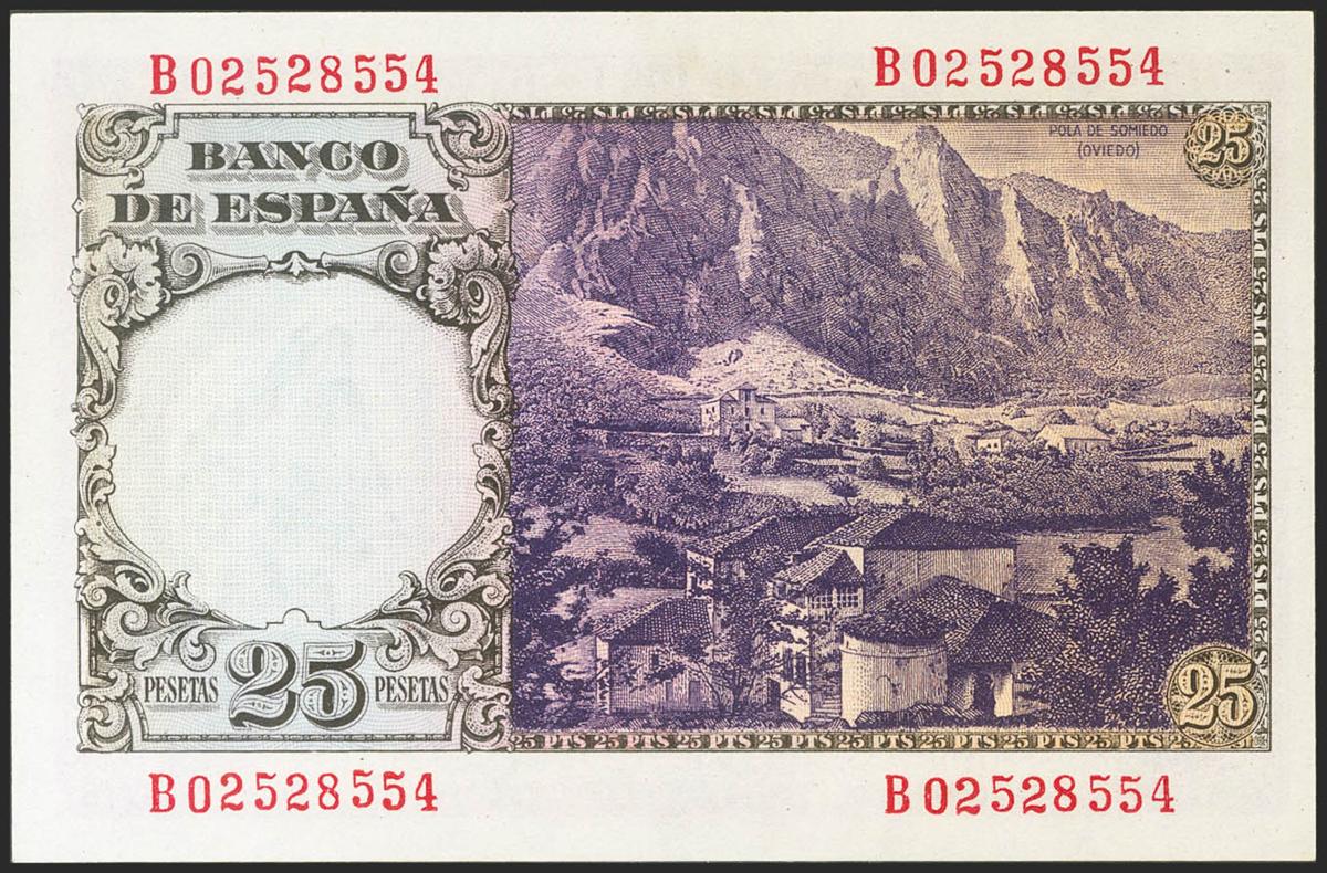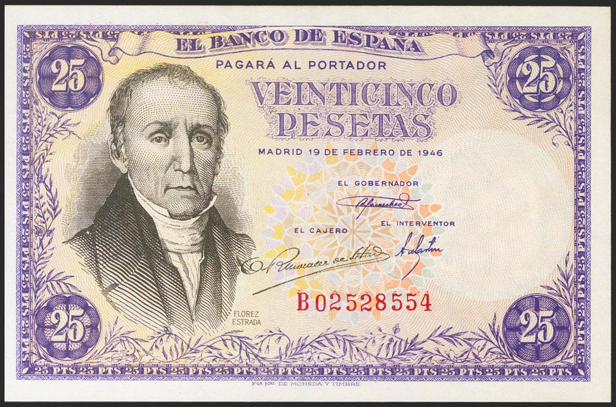 25 Pesetas. 19 de Febrero de 1946. Serie B. (Edifil 2021: 450a). Apresto original. SC-.
