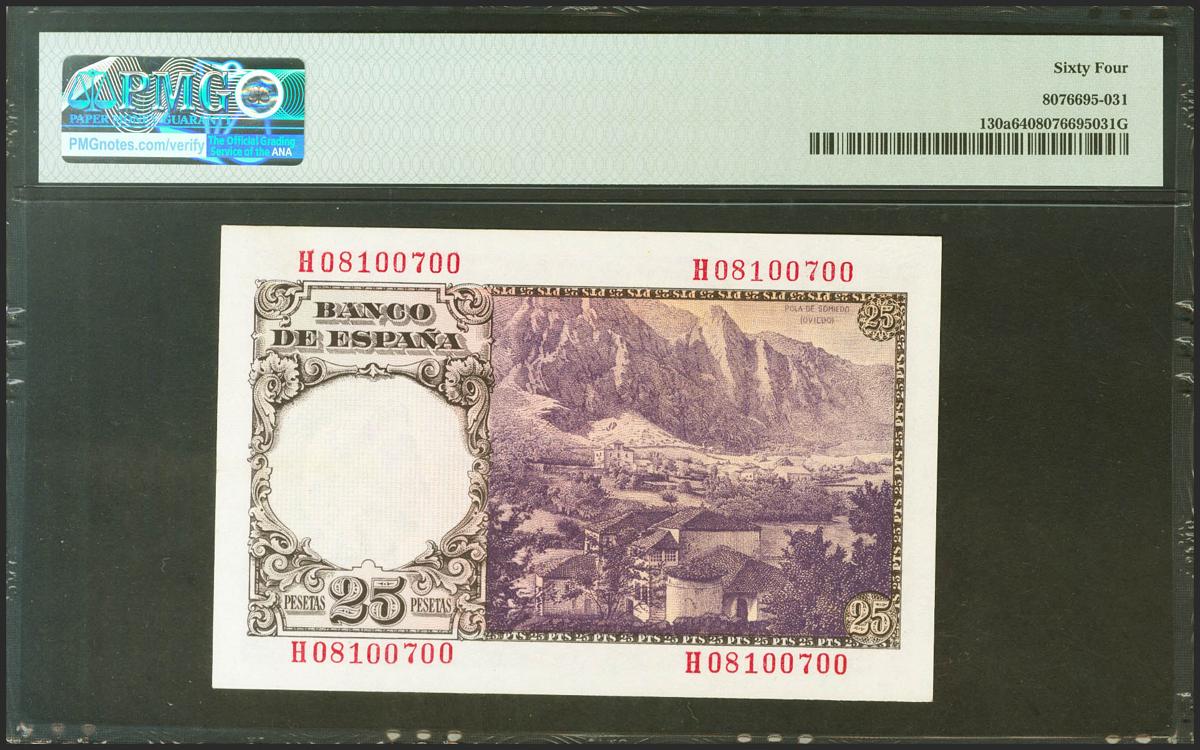 25 Pesetas. 19 de Febrero de 1946. Serie H. (Edifil 2021: 450a, Pick: 130a). SC. Encapsulado PMG64.
