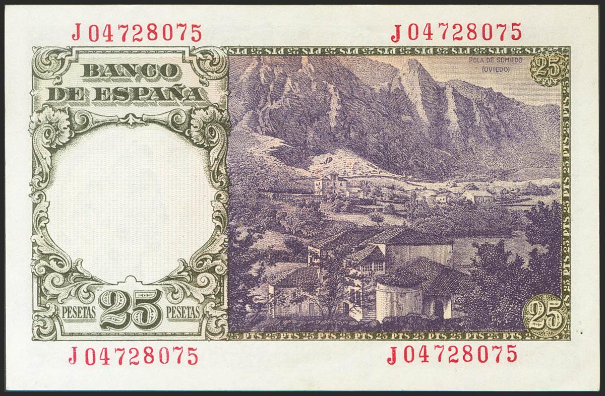25 Pesetas. 19 de Febrero de 1946. Serie J. (Edifil 2021: 450a). Apresto original. SC.