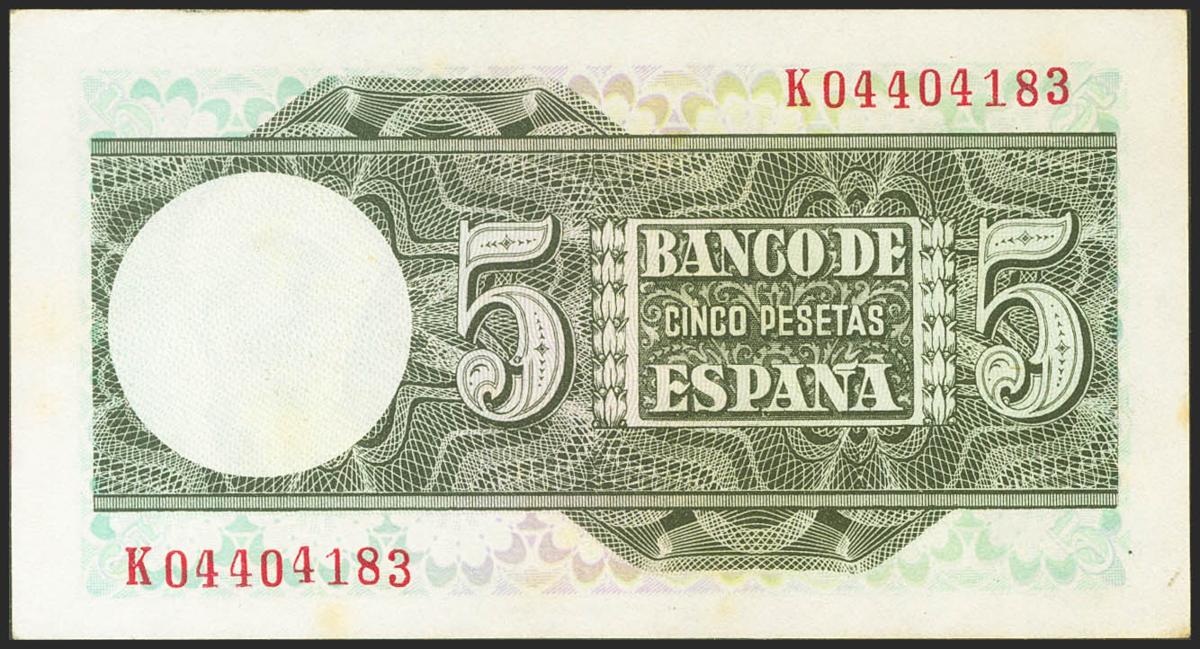 5 Pesetas. 5 de Marzo de 1948. Serie K. (Edifil 2021: 455a). Apresto original, sombritas del tiempo. SC--.