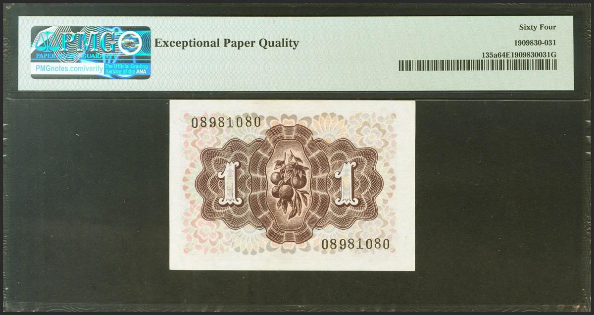 1 Peseta. 19 de Junio de 1948. Sin serie. (Edifil 2021: 457, Pick: 135a). Apresto original. SC. Encapsulado PMG64EPQ.