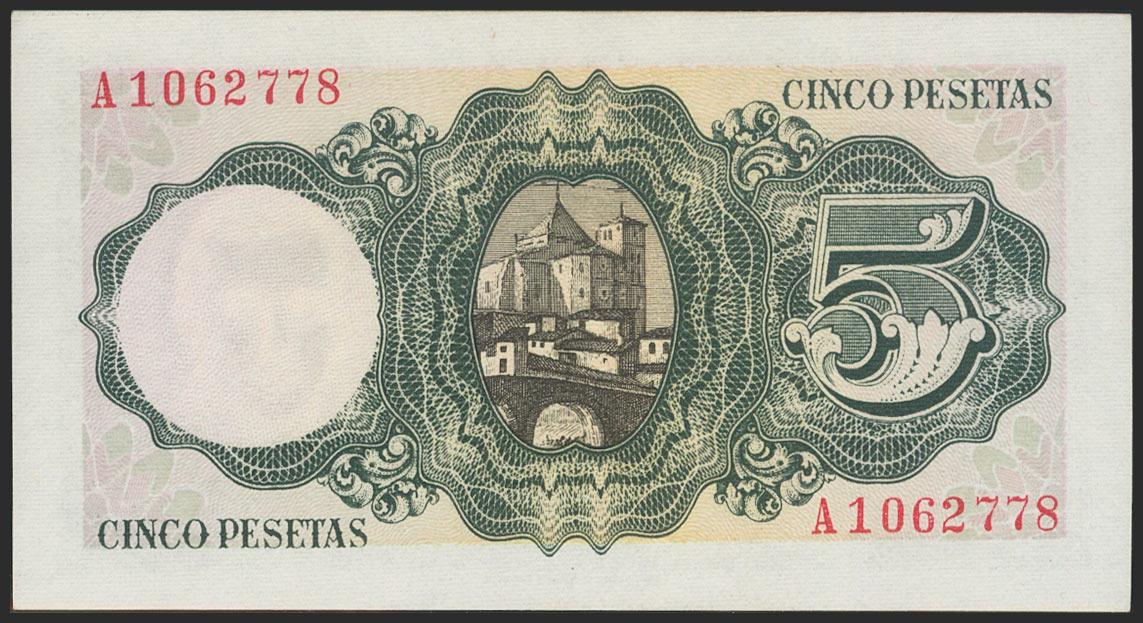 5 Pesetas. 16 de Agosto de 1951. Serie A. (Edifil 2021: 459a). Apresto original. SC-.