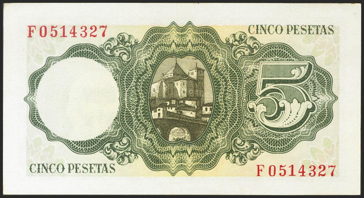 5 Pesetas. 12 de Abril de 1947. Serie F. (Edifil 2021: 459a). Conserva gran parte de su apresto original. EBC+.