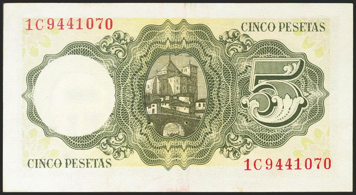 5 Pesetas. 12 de Abril de 1947. Serie 1C. (Edifil 2021: 459a). Apresto original, puntitos de grapa. SC-.