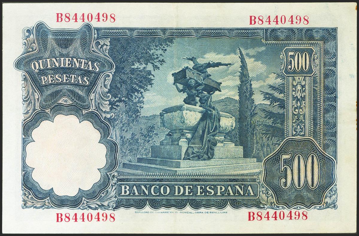500 Pesetas. 15 de Noviembre de 1951. Serie B. (Edifil 2021: 460a). Conserva parte de su apresto original. EBC-.