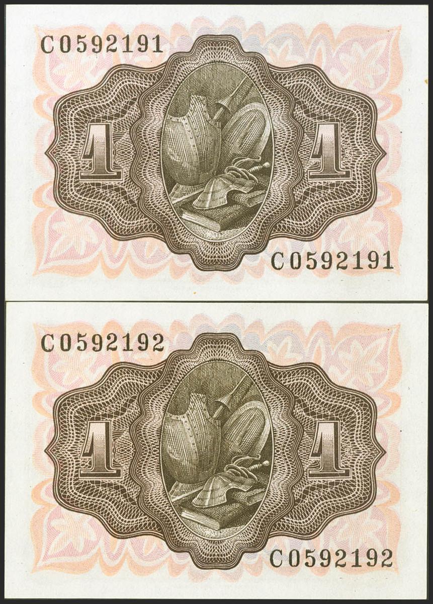 1 Peseta. 19 de Noviembre de 1951. Pareja correlativa. Serie C. (Edifil 2021: 461a). Apresto original. SC.