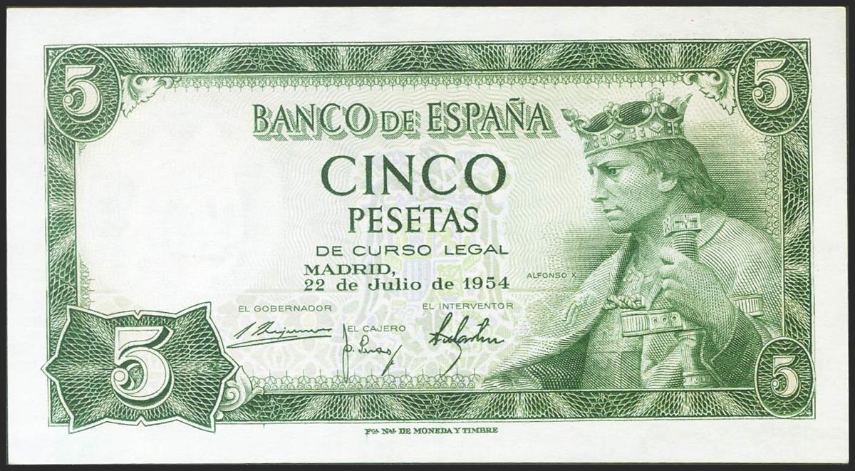 5 Pesetas. 22 de Julio de 1954. Serie C. (Edifil 2021: 466a). Apresto original. SC-.