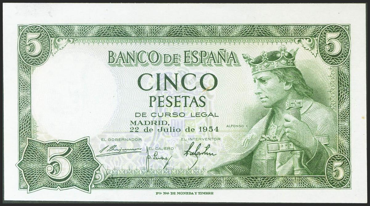 5 Pesetas. 22 de Julio de 1954. Serie K. (Edifil 2021: 466a). Apresto original. SC-.
