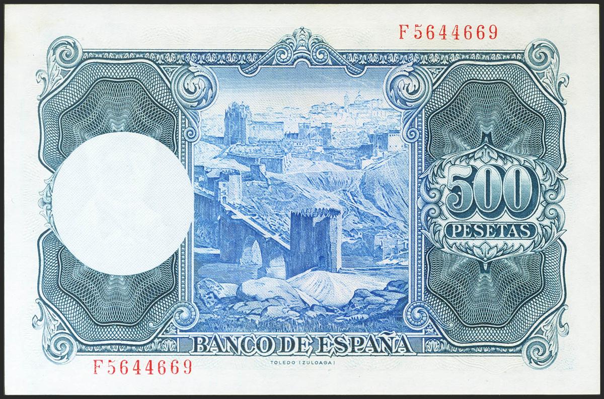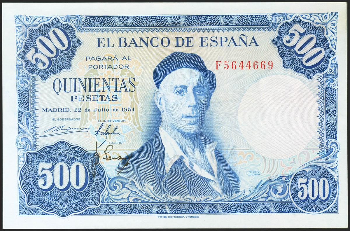 500 Pesetas. 22 de Julio de 1954. Serie F. (Edifil 2021: 468b). Apresto original. SC-.