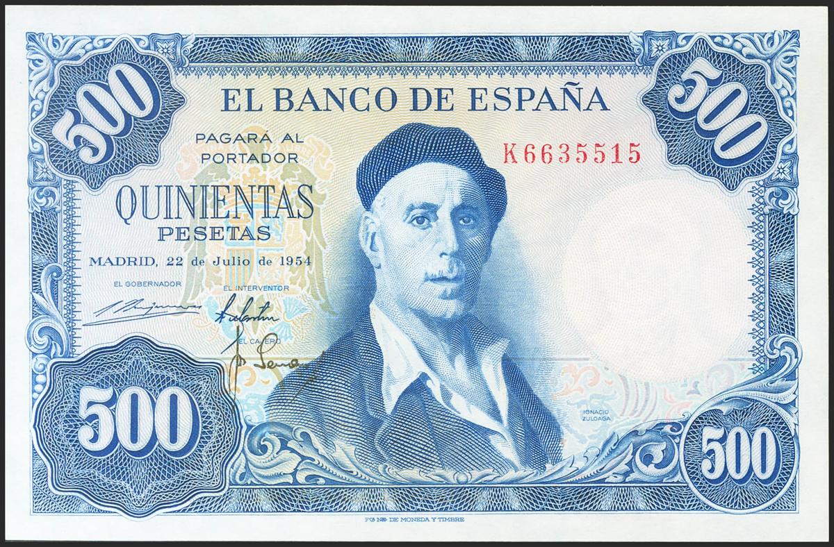 500 Pesetas. 22 de Julio de 1954. Serie K. (Edifil 2021: 468b). Apresto original. SC.