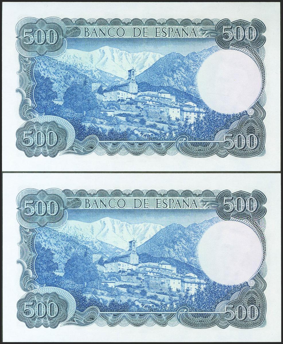500 Pesetas. 23 de Julio de 1971. Pareja correlativa. Serie J. (Edifil 2021: 473a). Apresto original. SC.