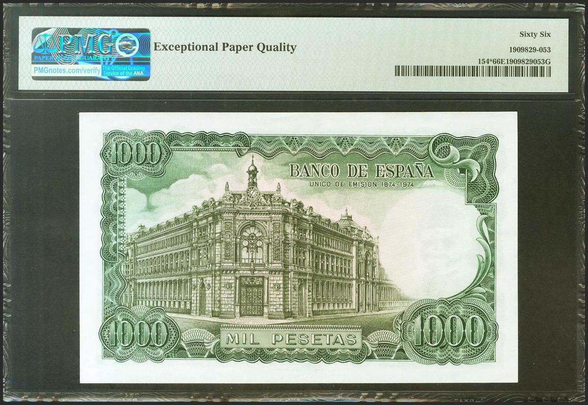 1000 Pesetas. 17 de Septiembre de 1971. Serie especial 9B. (Edifil 2021: 474d, Pick: 154*). Inusual en esta excepcional calidad, apresto original. SC. Encapsulado PMG66EPQ.