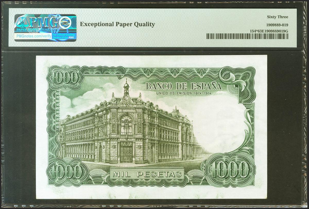 1000 Pesetas. 17 de Septiembre de 1971. Serie especial 9C. (Edifil 2021: 474d, Pick: 154*). Rara serie, apresto original. SC. Encapsulado PMG63EPQ.