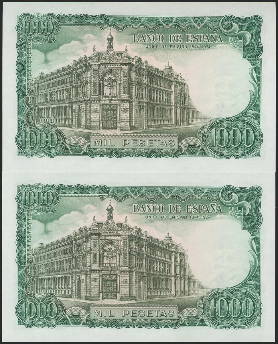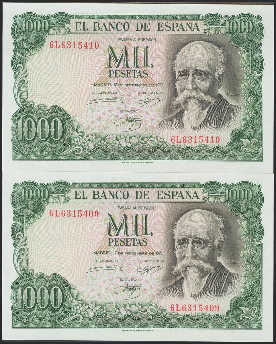 1000 Pesetas. 17 de Septiembre de 1971. Pareja correlativa. Serie 6L. (Edifil 2021: 474c). Apresto original. SC.
