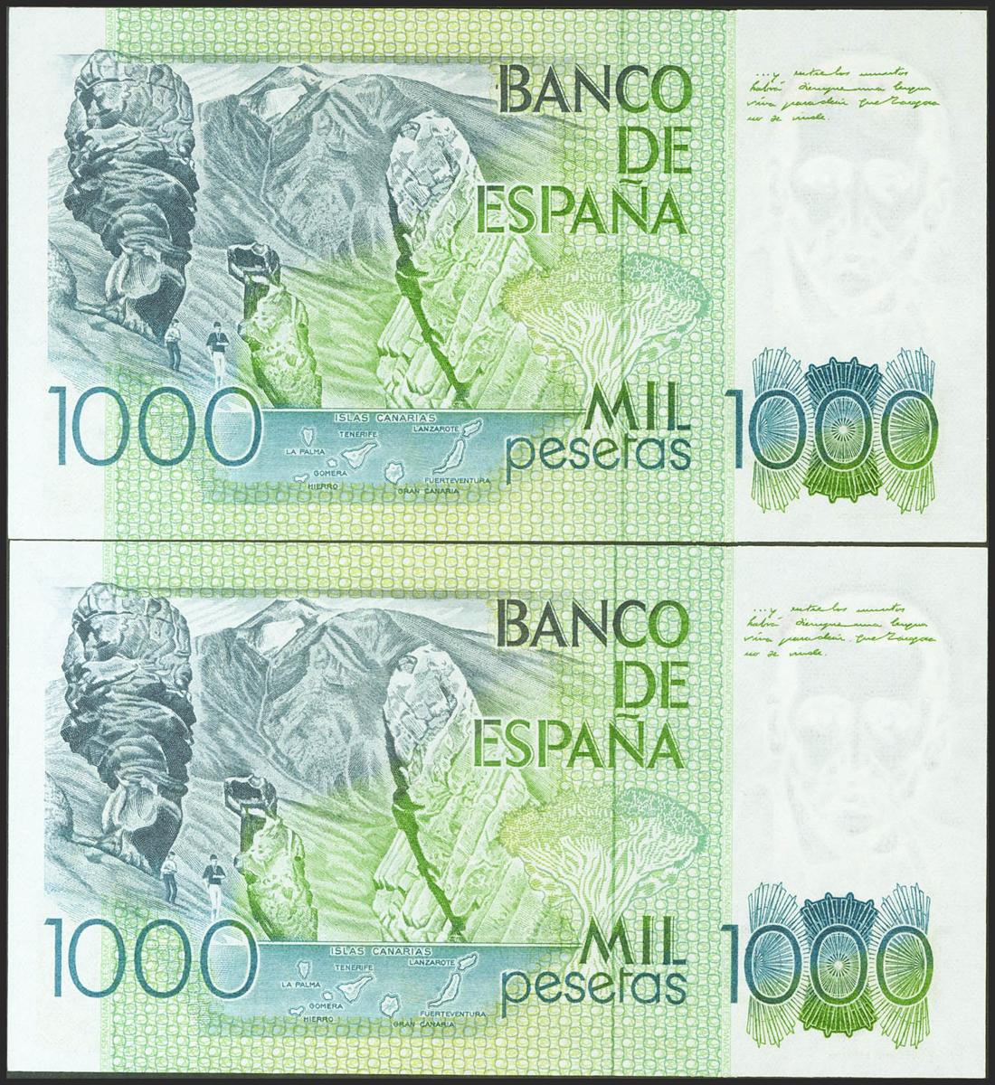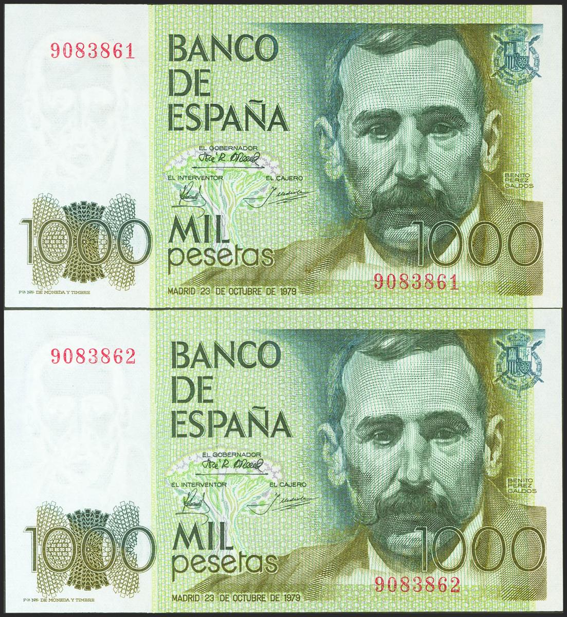 1000 Pesetas. 23 de Octubre de 1979. Pareja correlativa. Sin serie. (Edifil 2021: 477). SC.