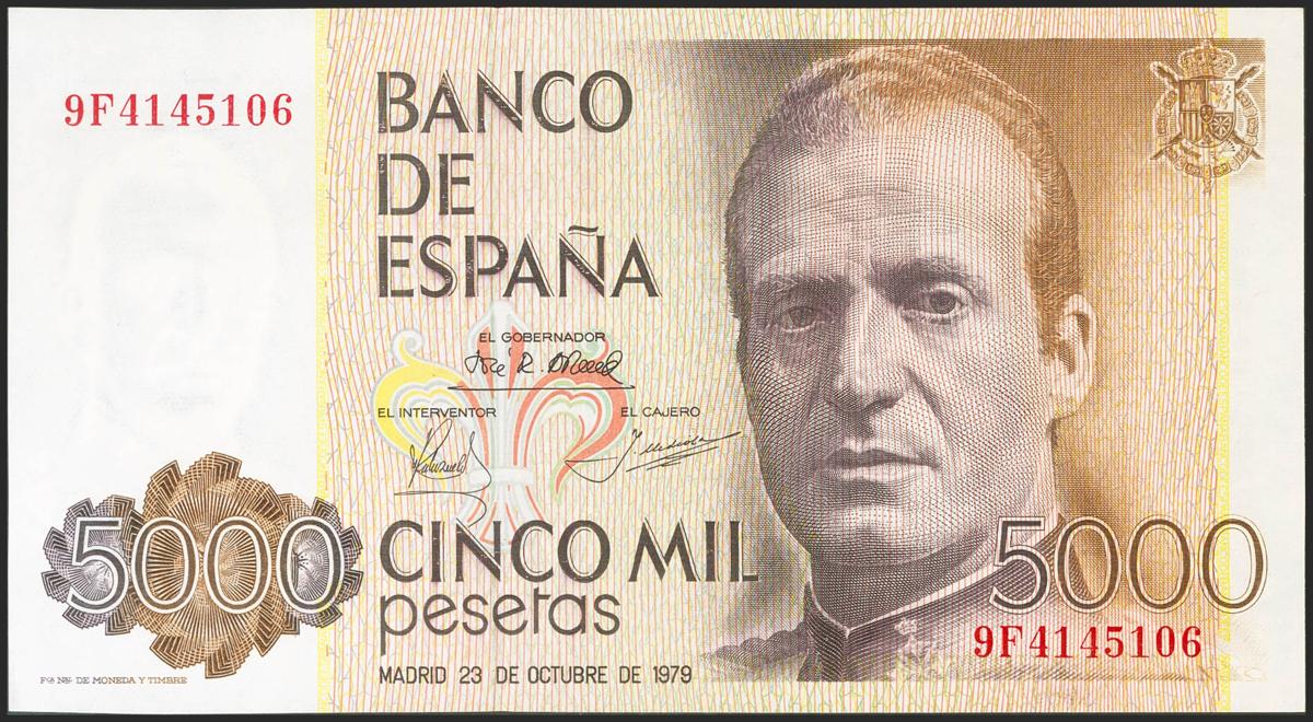 5000 Pesetas. 23 de Octubre de 1979. Serie especial 9F. (Edifil 2021: 478b). Raro. SC-.