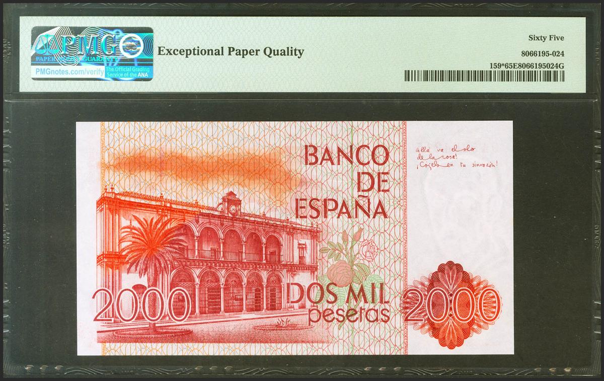 2000 Pesetas. 22 de Julio de 1980. Serie especial 9A. (Edifil 2021: 479b, Pick: 159*). Inusual en esta excepcional calidad, apresto original. SC. Encapsulado PMG65EPQ.