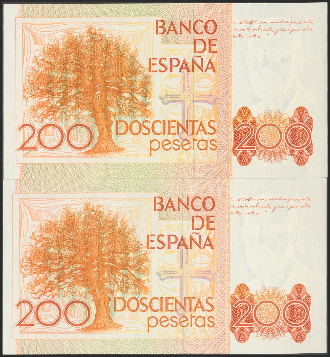 200 Pesetas. 16 de Septiembre de 1980. Pareja correlativa. Serie 9A, numeración especial. (Edifil 2017: 480b). SC.
