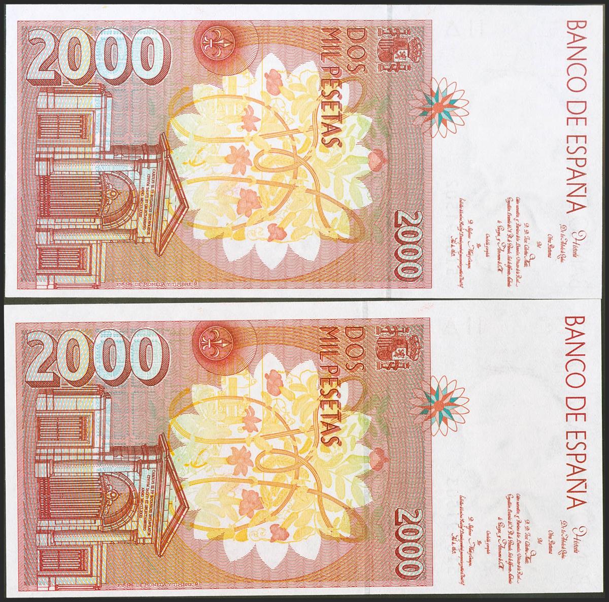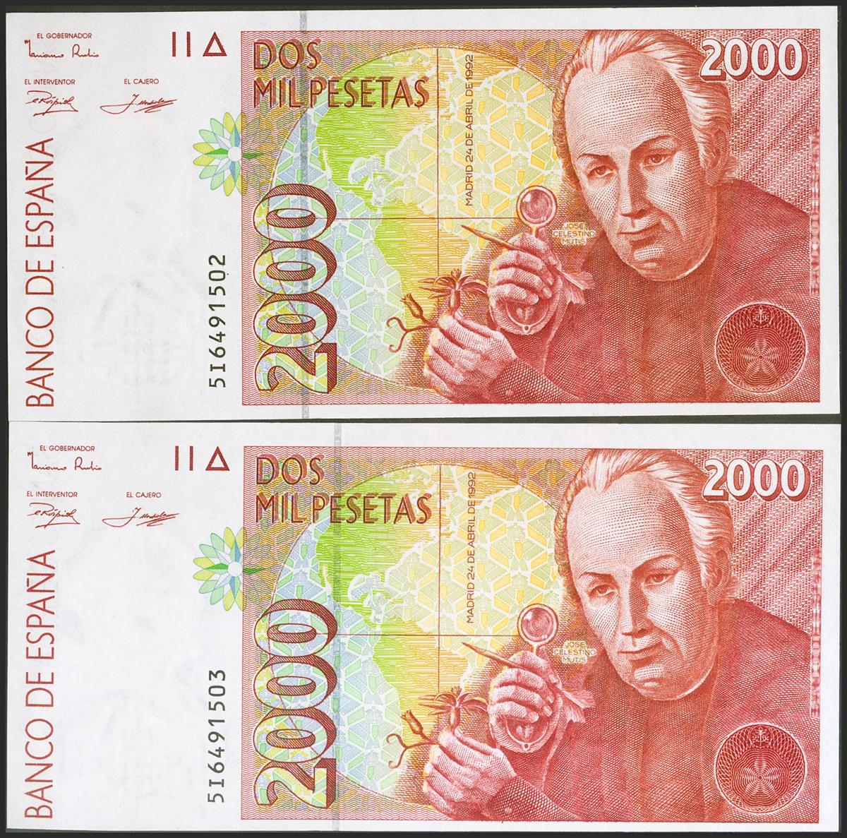 2000 Pesetas. 24 de Abril de 1992. Pareja correlativa. Serie 5I. (Edifil 2021: 482Aa). SC.