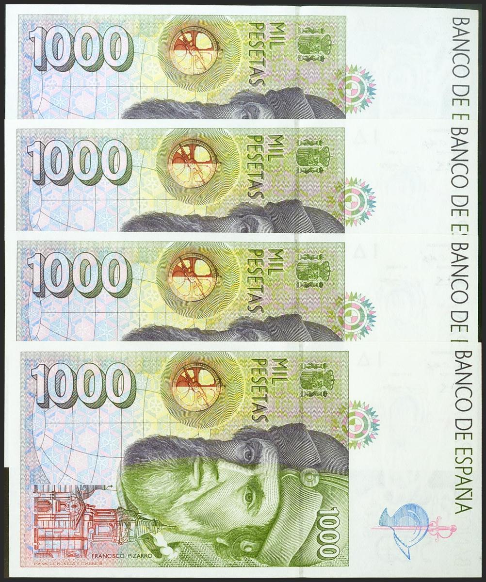 Conjunto de 4 billetes de 1000 Pesetas, emitidos el 12 de Octubre de 1992, sin serie. (Edifil 2021: 483). SC.