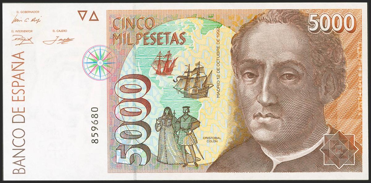 5000 Pesetas. 12 de Octubre de 1992. Sin serie. (Edifil 2021: 484). SC.