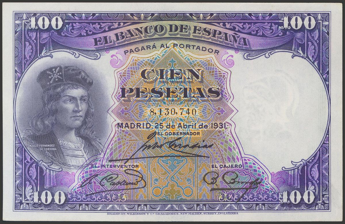 100 Pesetas. 25 de Abril de 1931. Sin serie. (Edifil 2017: 360). Conserva todo su apresto original. SC.