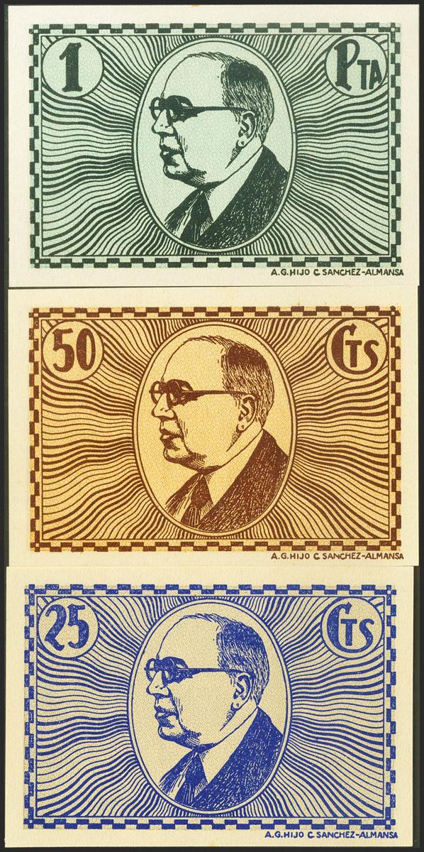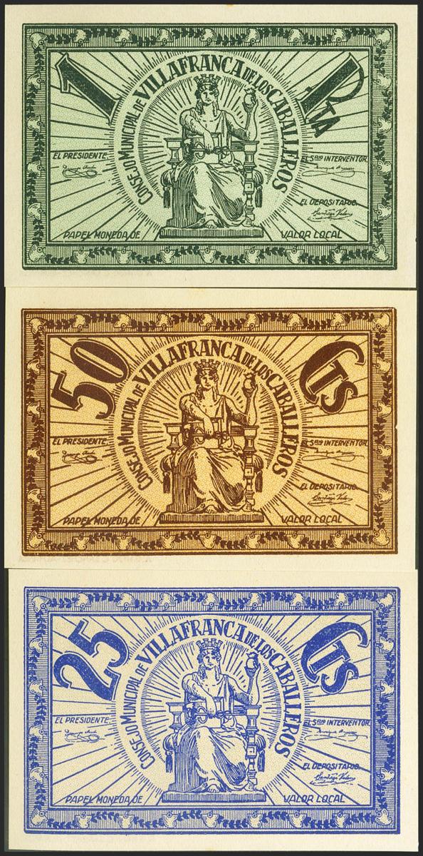 VILLAFRANCA DE LOS CABALLEROS (TOLEDO). 25 Céntimos, 50 Céntimos y 1 Peseta. (1937ca). (González: 5521/23). Serie completa. SC-.