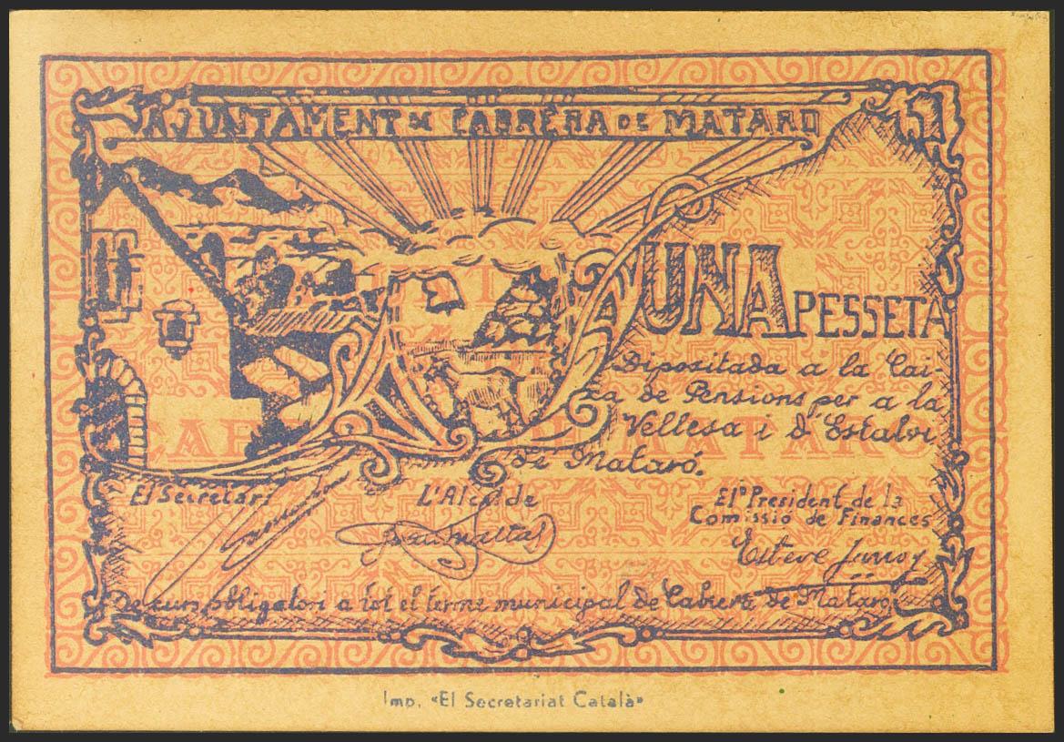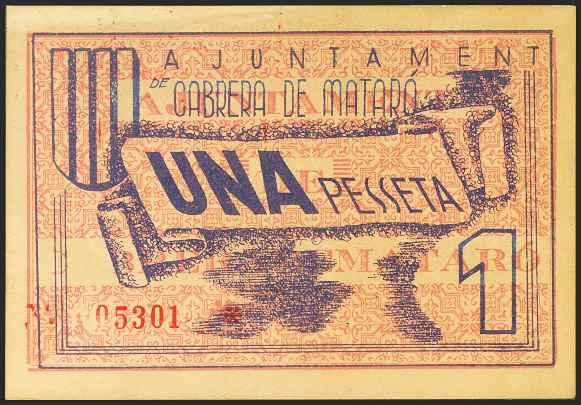 CABRERA DE MATARO (BARCELONA). 1 Peseta. (1937ca). (González: 7239). SC-.