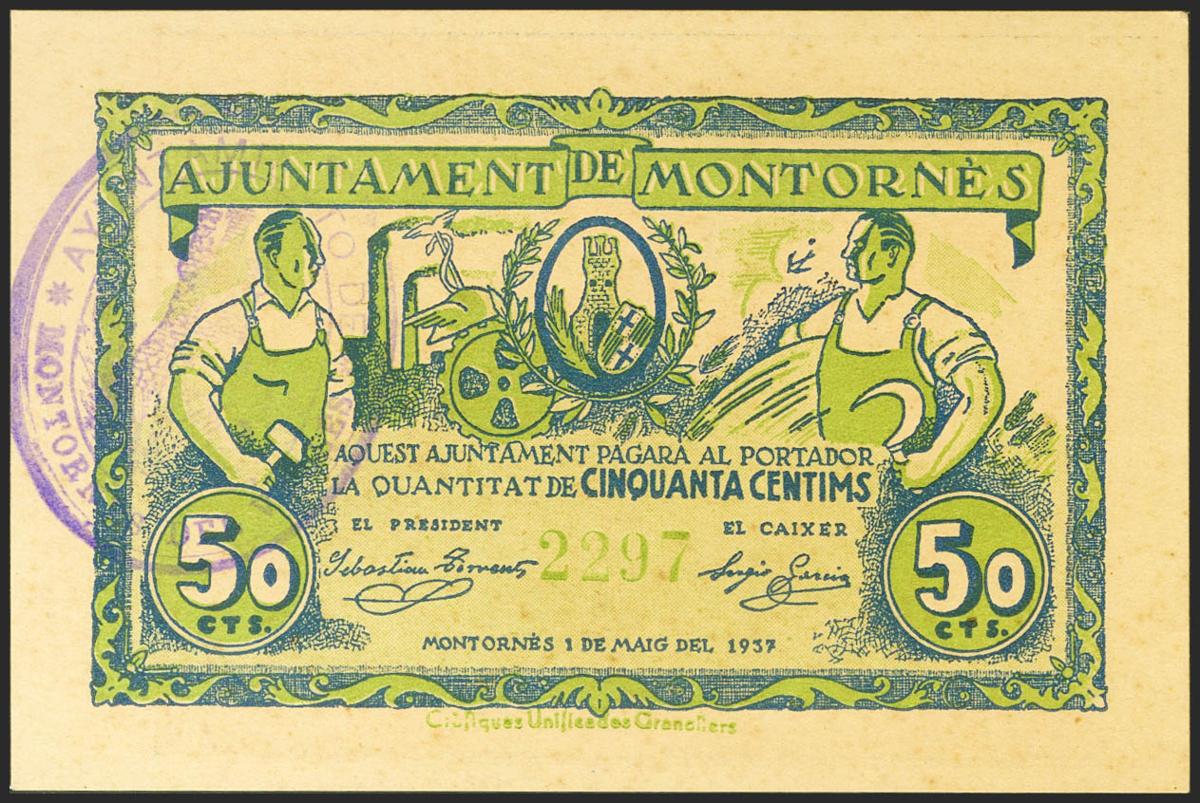 MONTORNES (BARCELONA). 50 Céntimos. (1937ca). (González: 8808). Inusual. SC.