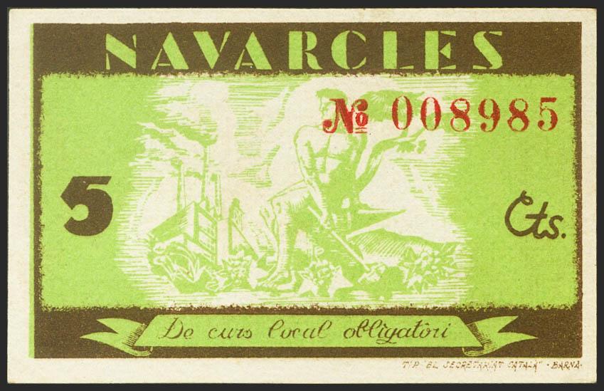 NAVARCLES (BARCELONA). 5 Céntimos. 27 de Agosto de 1937. (González: 8878). SC-.