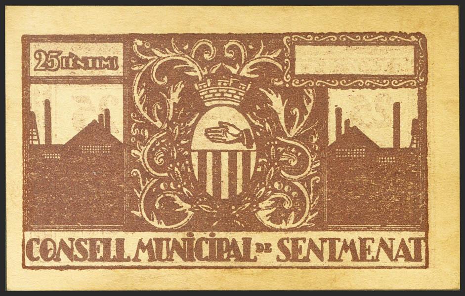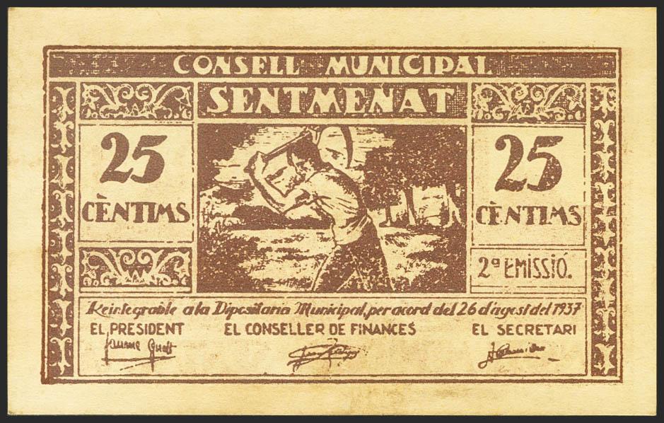 SENTMENAT (BARCELONA). 25 Céntimos. 26 de Agosto de 1937. (González: 9951). SC-.