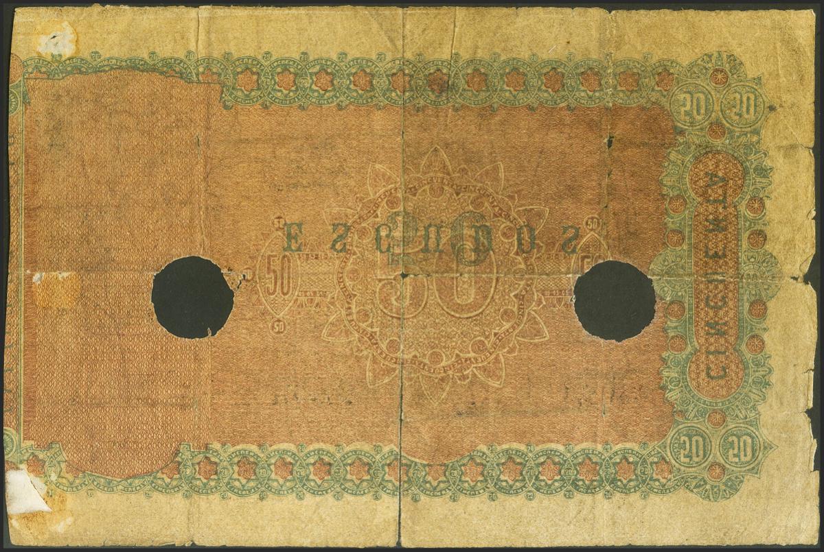 100 Pesetas. 1 de Enero de 1866. Falso de época y marca FALSO. Sin serie. (Edifil 2021: 266F). Muy raro. MBC-.