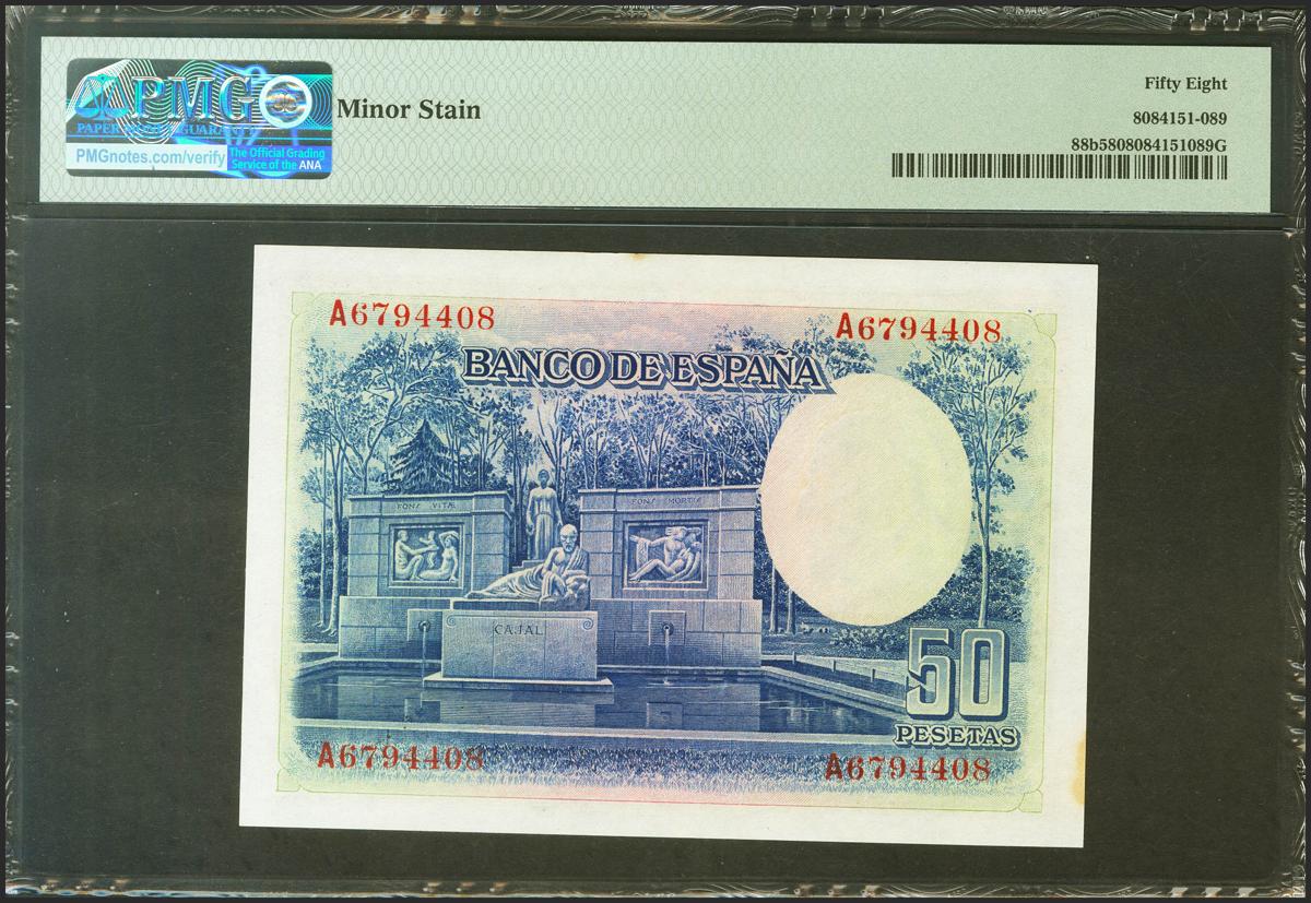 50 Pesetas. 22 de Julio de 1935. Serie A. (Edifil 2021: 366a, Pick: 88b). EBC++. Encapsulado PMG58.