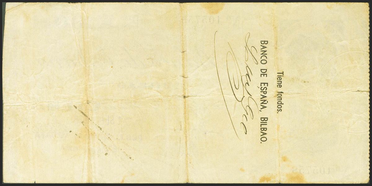 100 Pesetas. 1936. Sin serie. Sucursal de Bilbao y antefirma Banco de Vizcaya. (Edifil 2021: 371b). MBC.