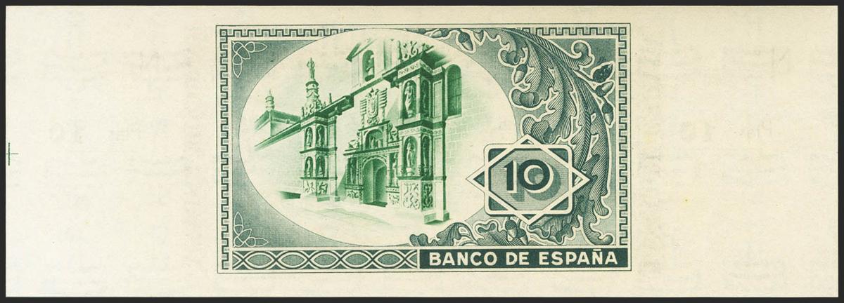 10 Pesetas. 1 de Enero de 1937. Sucursal de Bilbao, antefirma Caja de Ahorros y de Monte de Piedad Municipal de Bilbao. Sin serie y sin numeración, con ambas matrices. (Edifil 2021: 387g). Apresto original. SC-.