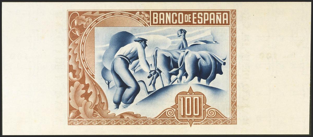 100 Pesetas. 1 de Enero de 1937. Sucursal de Bilbao, antefirma Banco de Vizcaya. Sin serie y sin numeración, con ambas matrices. (Edifil 2021: 390b). Apresto original. SC-.