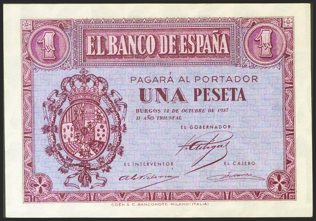 1 Peseta. 12 de Octubre de 1937. Serie B. (Edifil 2021: 425a). Apresto original. SC-.