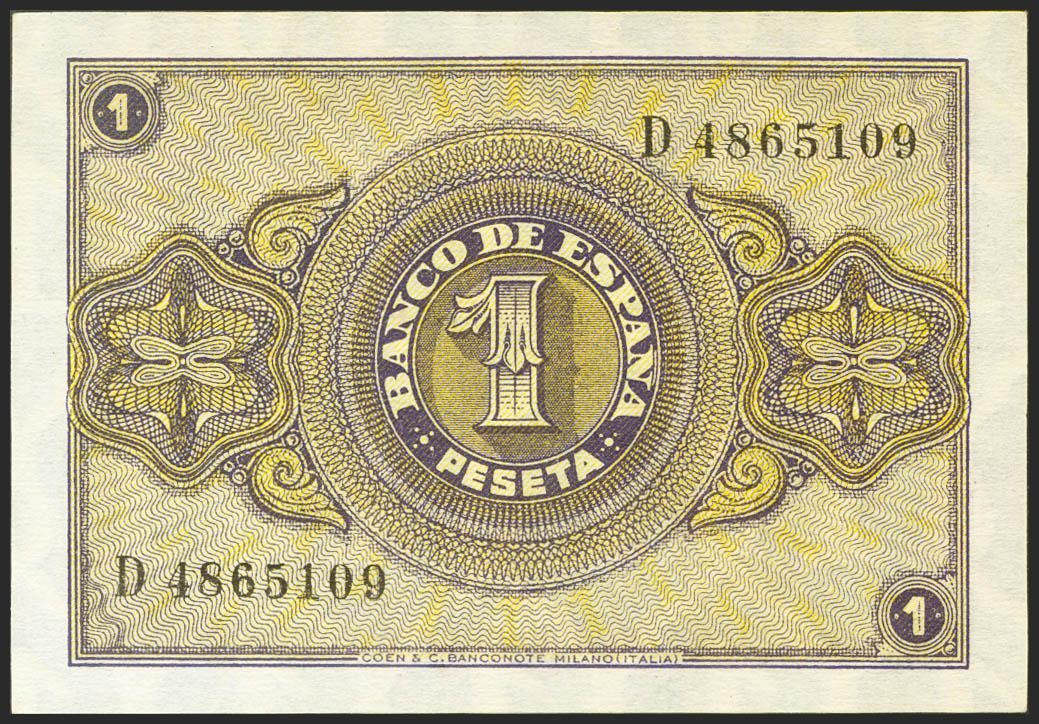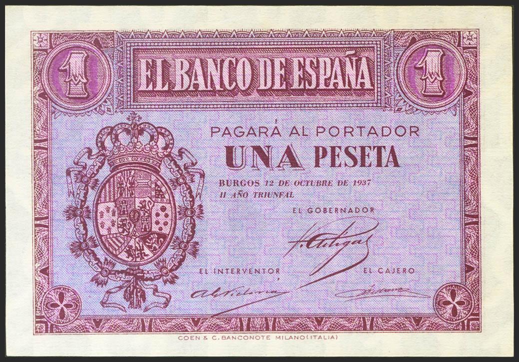 1 Peseta. 12 de Octubre de 1937. Serie D. (Edifil 2021: 425a). Apresto original. SC-.