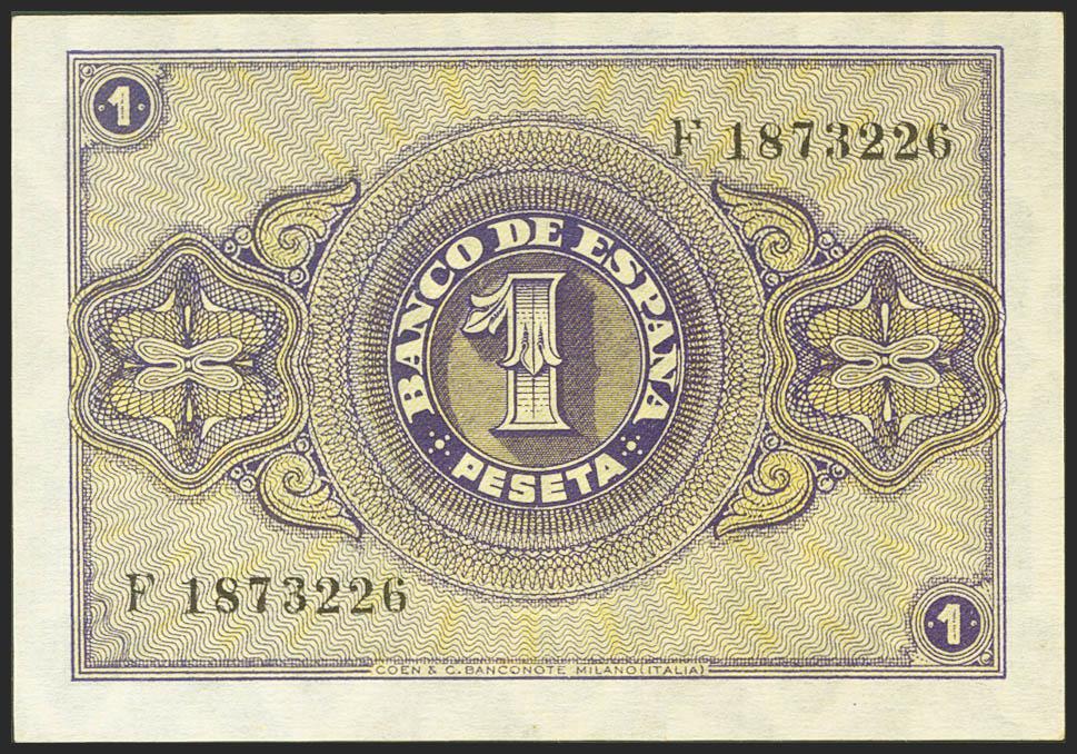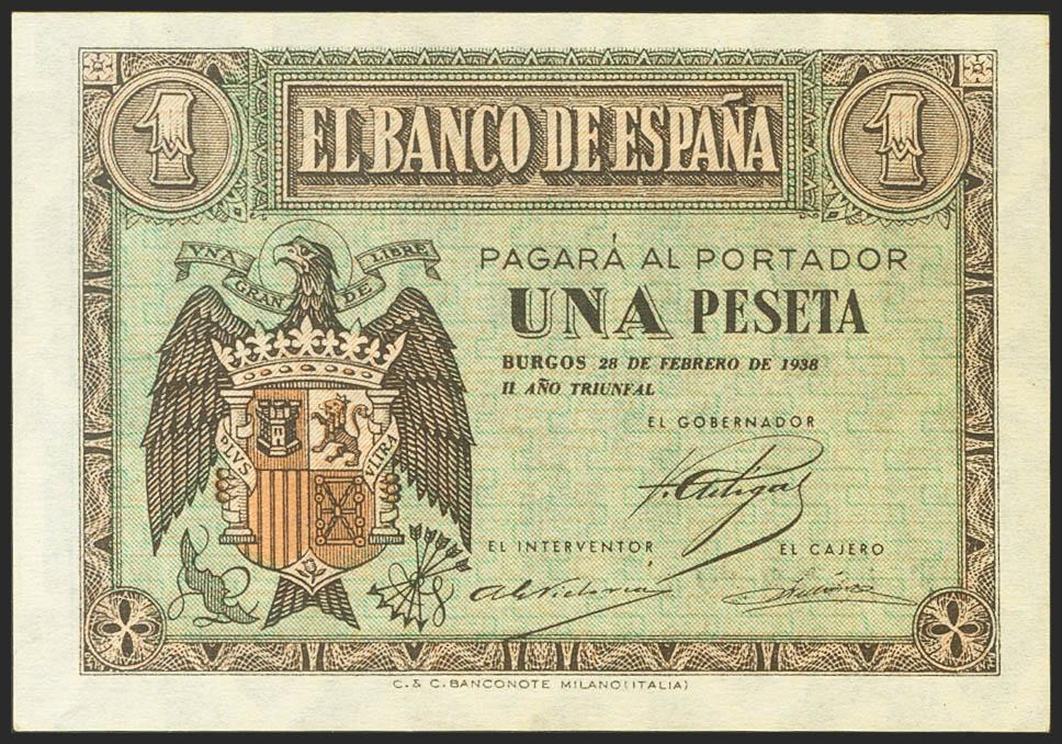 1 Peseta. 28 de Febrero de 1938. Serie F. (Edifil 2021: 427a). Apresto original. SC.