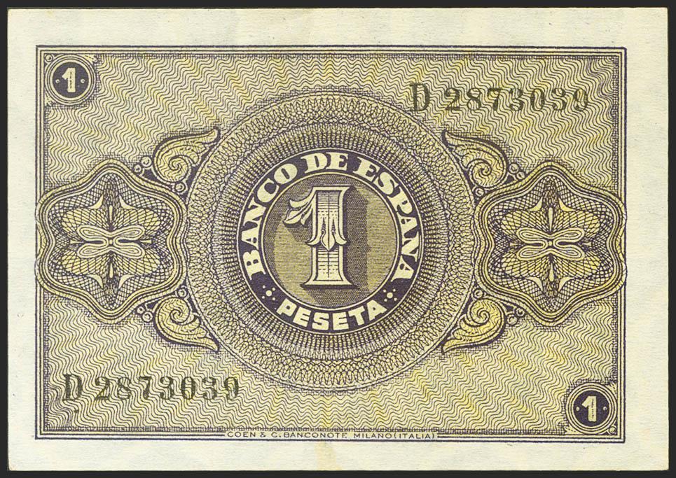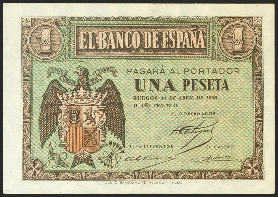 1 Peseta. 30 de Abril de 1938. Serie D. (Edifil 2021: 428a). Apresto original. SC-.