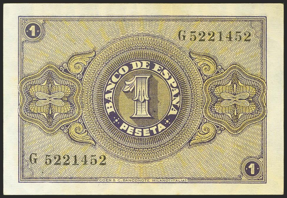 1 Peseta. 30 de Abril de 1938. Serie G. (Edifil 2021: 428a). Conserva gran parte del apresto original. EBC.