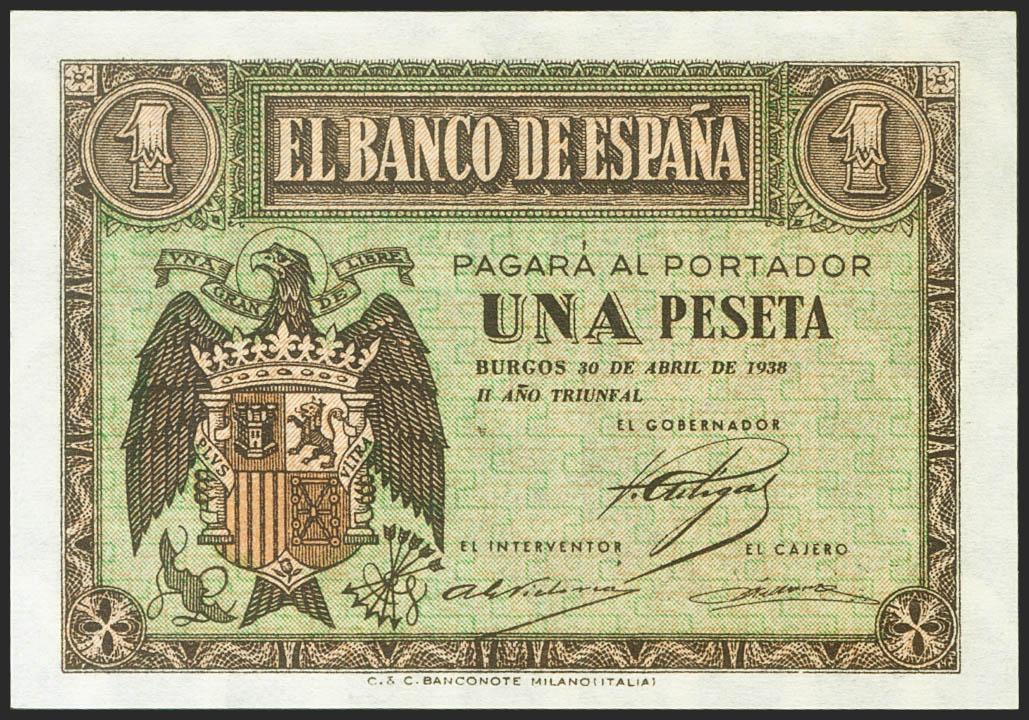 1 Peseta. 30 de Abril de 1938. Serie H. (Edifil 2021: 428a). Apresto original. SC.