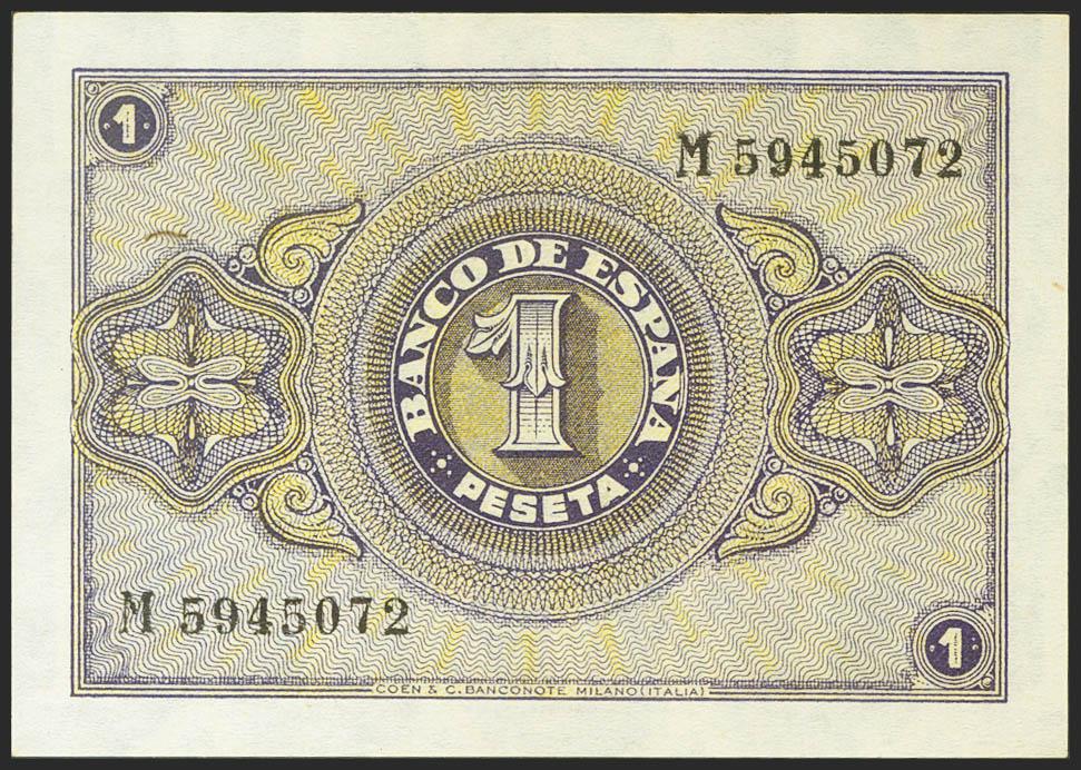 1 Peseta. 30 de Abril de 1938. Serie M. (Edifil 2021: 428a). Apresto original. SC.