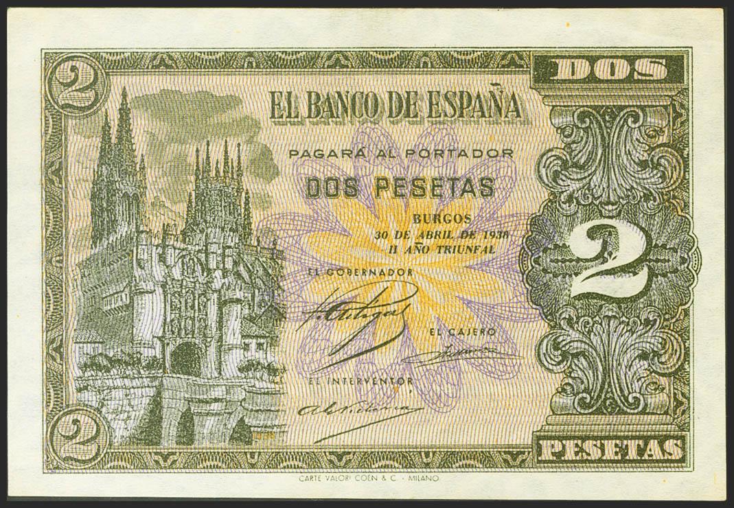 2 Pesetas. 30 de Abril de 1938. Serie H. (Edifil 2021: 429a). Apresto original. SC-.
