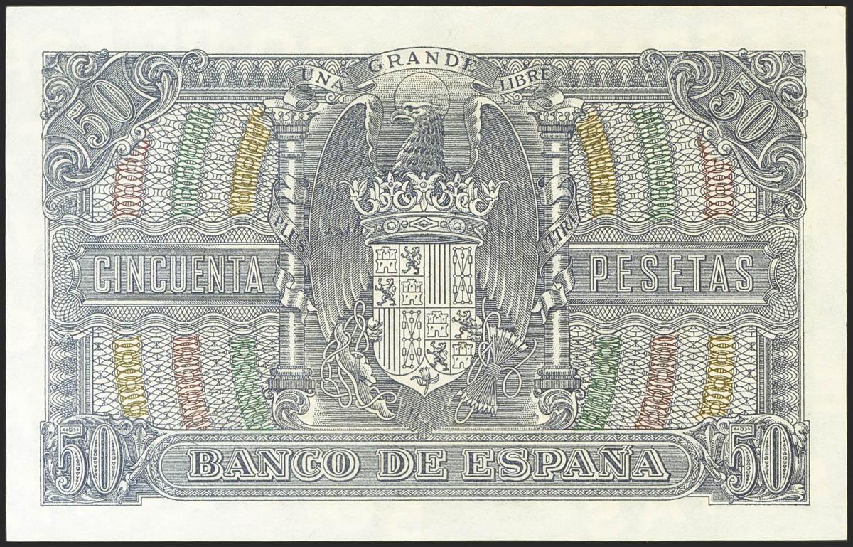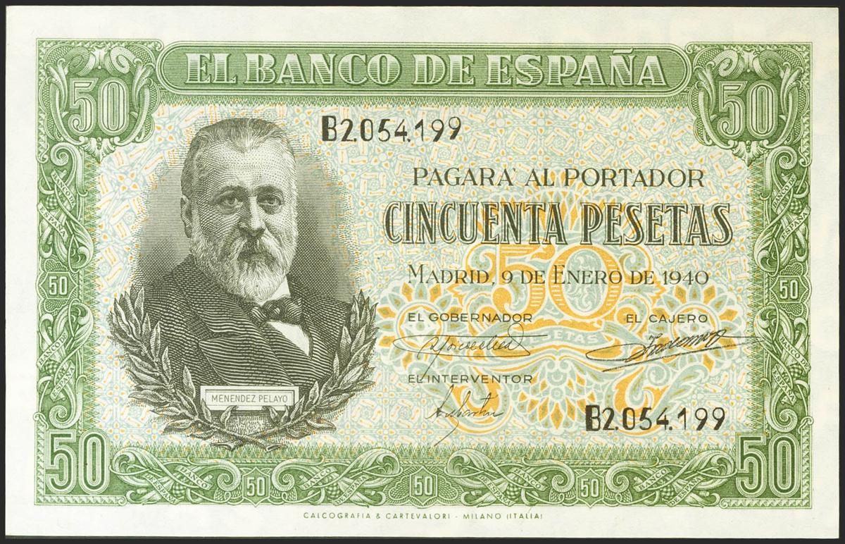 50 Pesetas. 9 de Enero de 1940. Serie B. (Edifil 2021: 437a). Conserva gran parte del apresto original. EBC+.