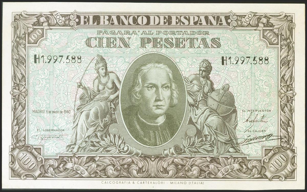 100 Pesetas. 9 de Enero de 1940. Serie H. (Edifil 2021: 438a). Conserva parte de su apresto original. EBC.