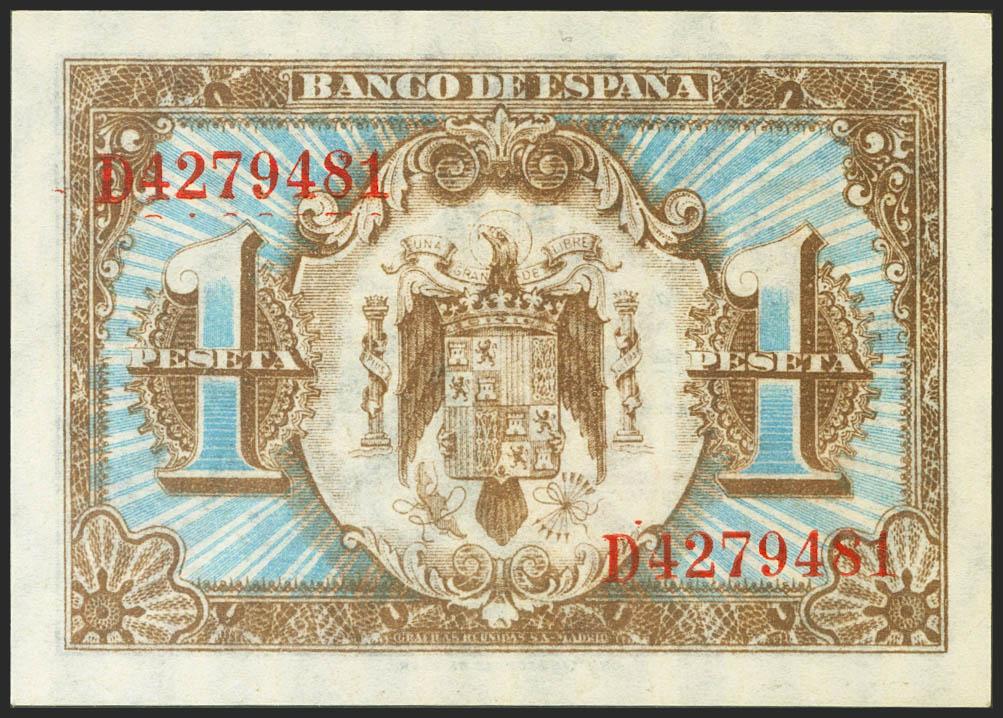 1 Peseta. 1 de Junio de 1940. Serie D. (Edifil 2021: 441a). Conserva gran parte del apresto original. SC-.