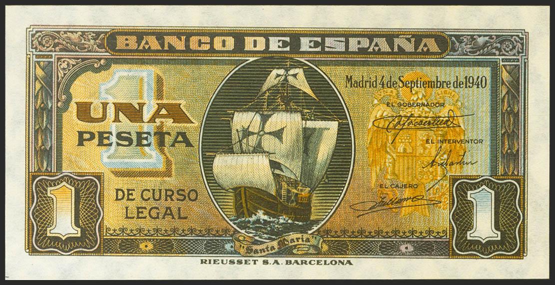 1 Peseta. 4 de Septiembre de 1940. Serie A. (Edifil 2021: 442a). Apresto original. SC-.
