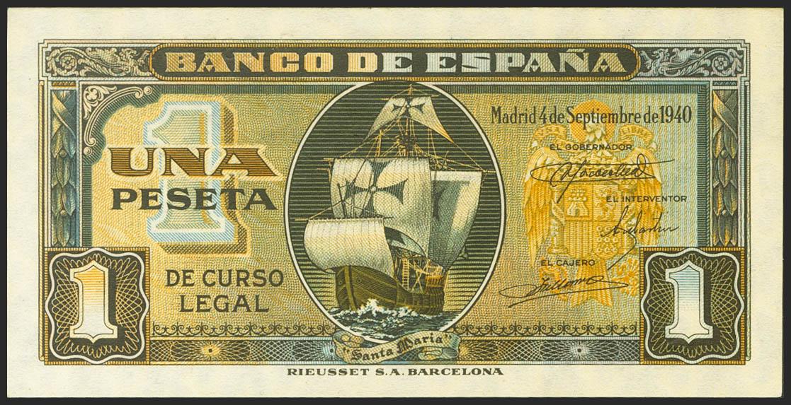 1 Peseta. 4 de Septiembre de 1940. Serie G. (Edifil 2021: 442a). Apresto original. SC-.
