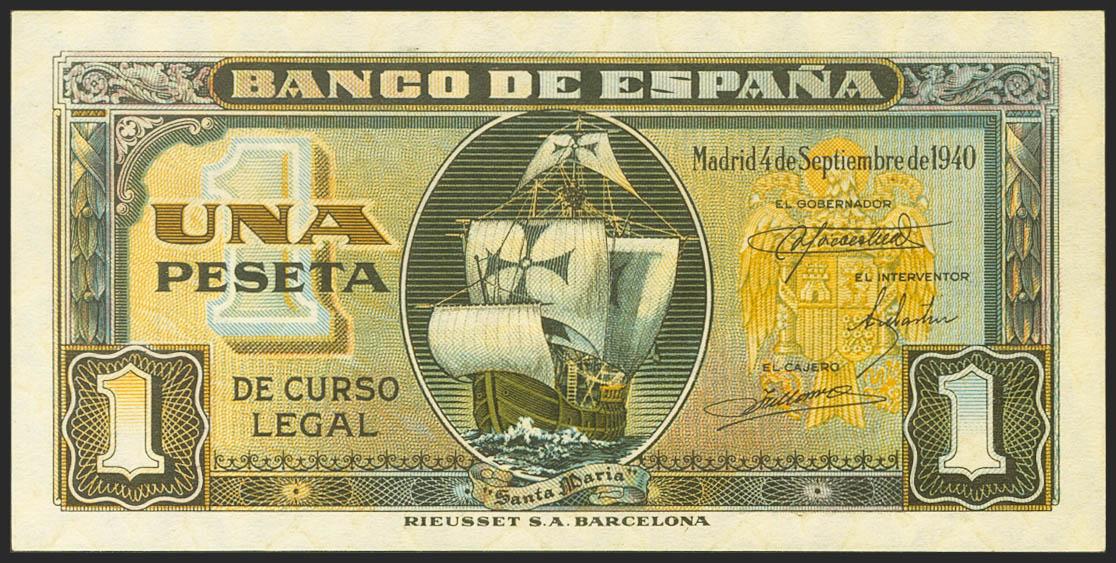 1 Peseta. 4 de Septiembre de 1940. Serie I. (Edifil 2021: 442a). Apresto original. SC.